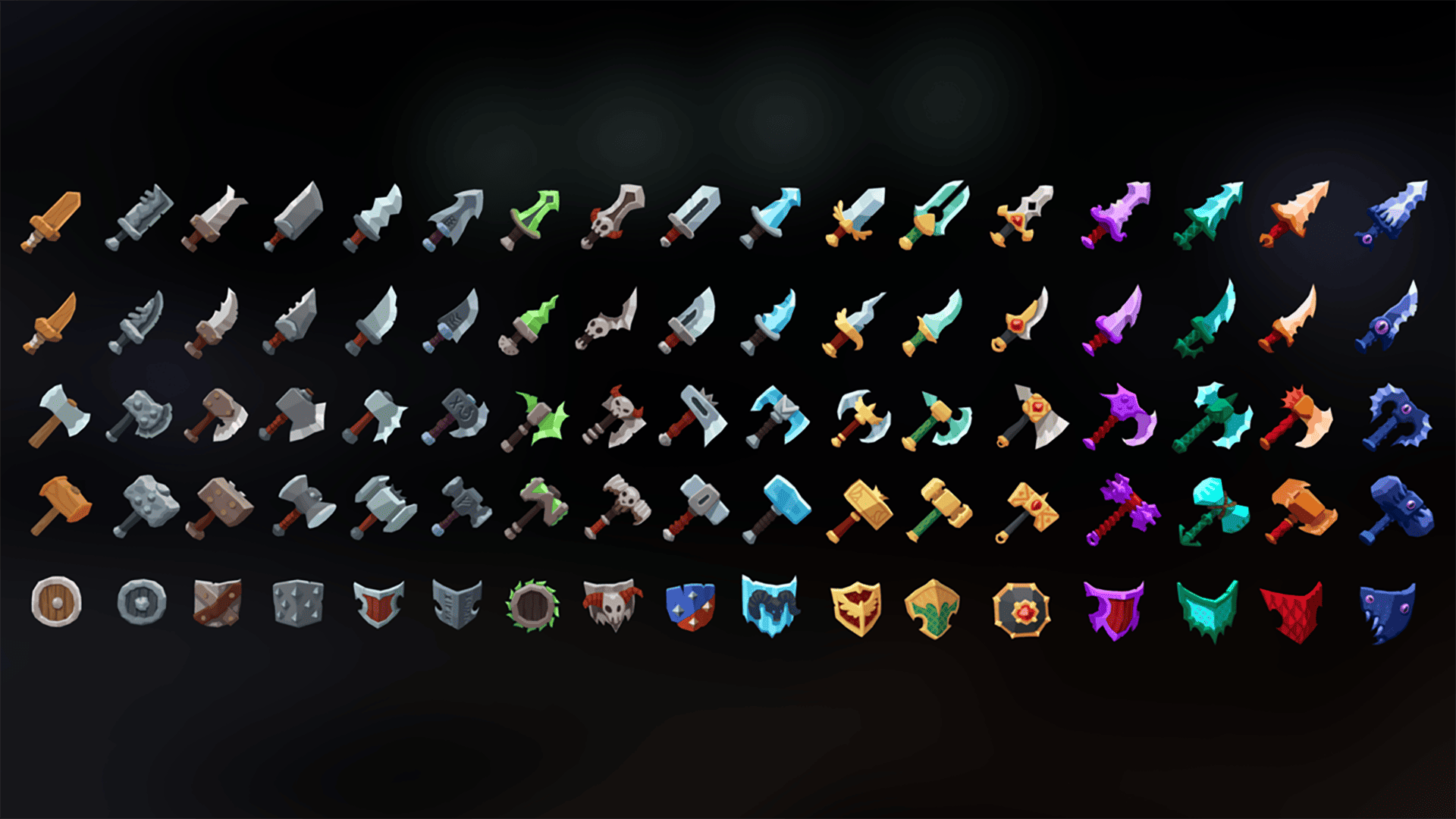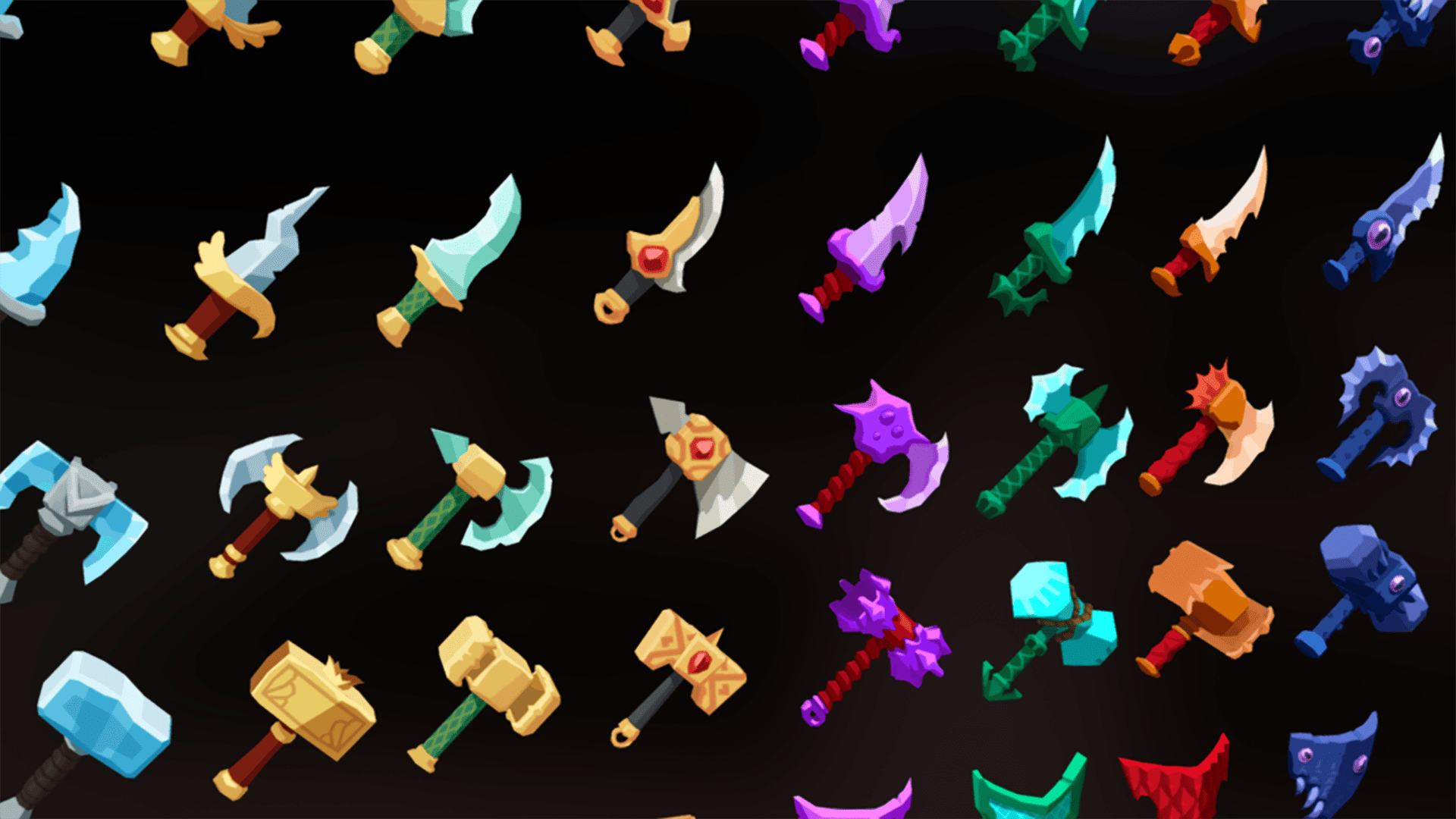 A pack of 85 casual-style weapon icons designed for RPGs and adventure games. Each icon is rendered in high quality with a clean and colorful look, ideal for inventory, UI, or shop systems.